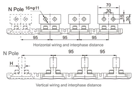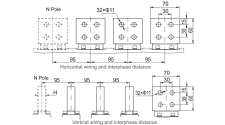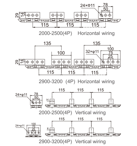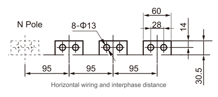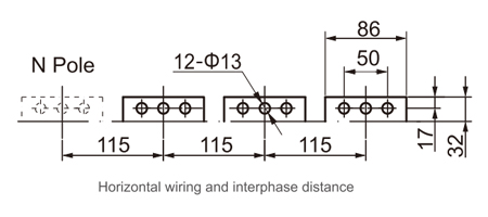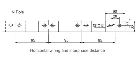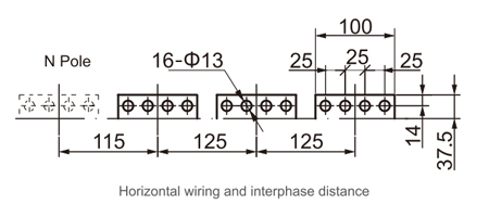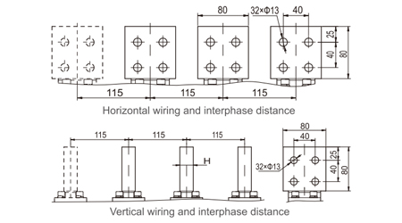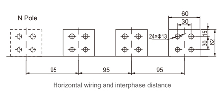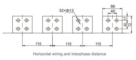 | RDW5-6300/4P Fixed type horizontal connection | Horizontal connection and phase spacing |