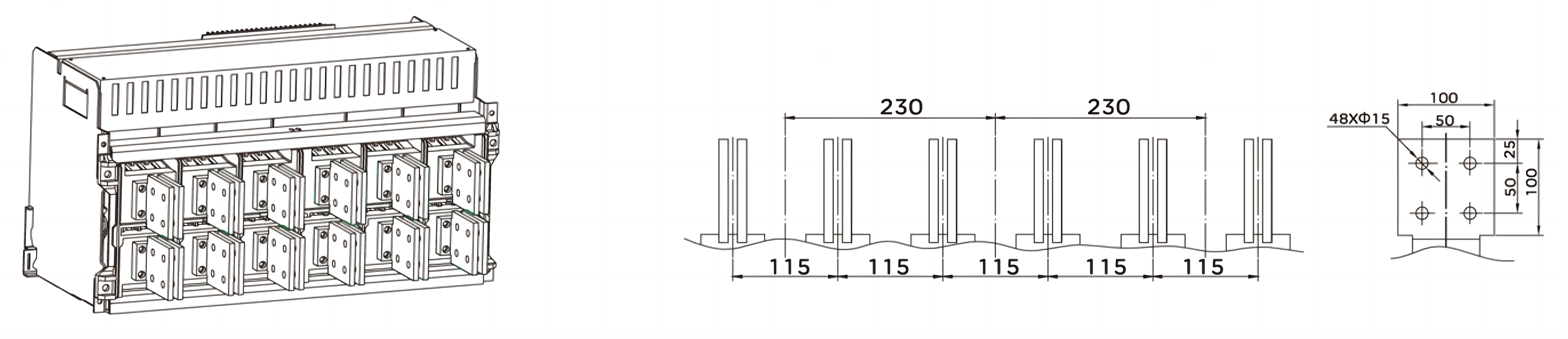| Overall dimension | Horizontal connection and phase spacing | Installation dimension |