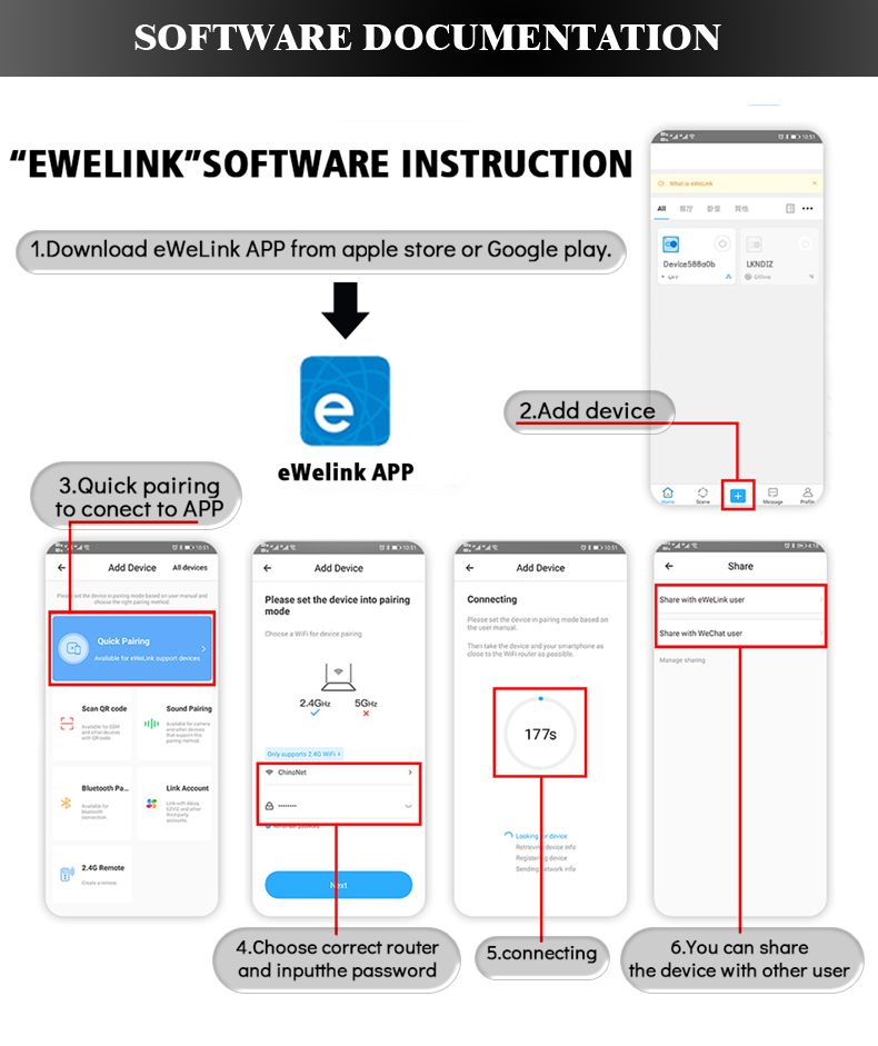 You can share the App with different people, and using the mobile APP for wireless docking remote control.